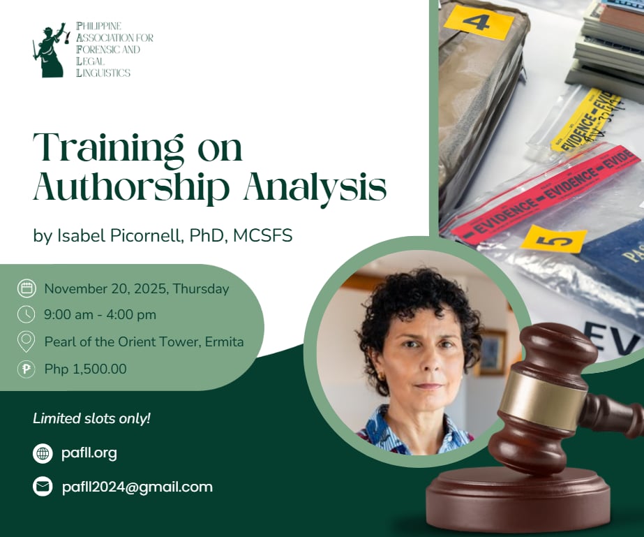 Dr. Isabel Picornell, MCSFS, Visiting Research Fellow at the Aston Institute for Forensic Linguistics, delivered an intensive and insightful training on authorship analysis—demonstrating how linguistic theories can illuminate the language of ransom notes, suicide notes, texts presented as evidence,